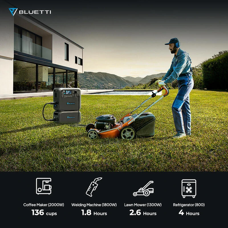 Le BLUETTI B230 a une capacitĂ© de 2 048 Wh et prend en charge la charge des batteries solaires, CA, de voiture et au plomb, ce qui en fait une source d’alimentation polyvalente.