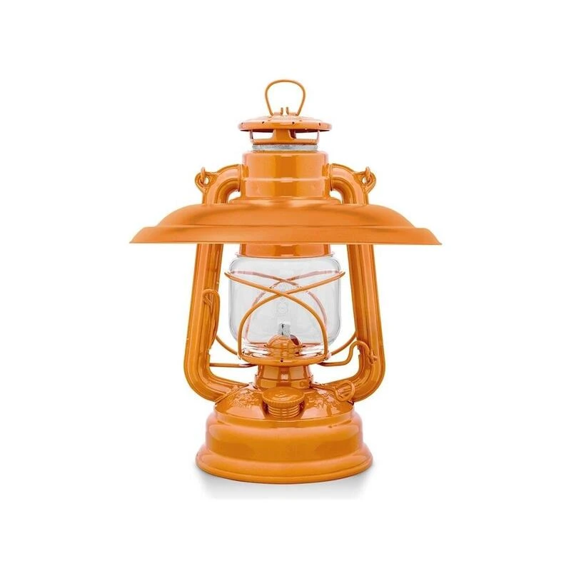 Lanterne Feuerhand d’Allemagne: garantie anti-rouille! 26cm de haut, 13cm de large. Capacité du réservoir 0.34L. Brûle jusqu’à 20 heures. Teinte orangée.